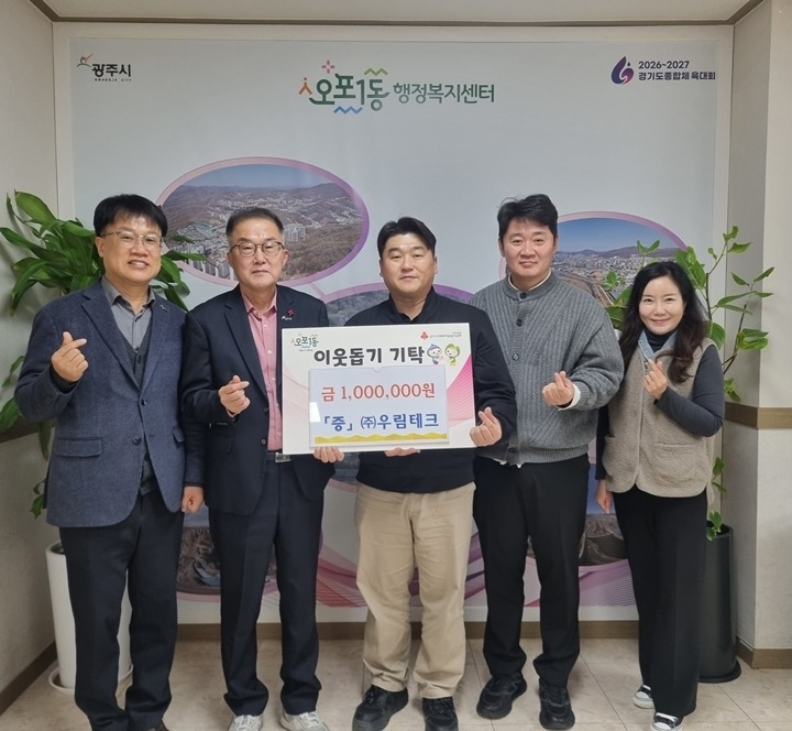 우림테크, 광주시 오포1동에 이웃돕기 성금 100만 원 기탁