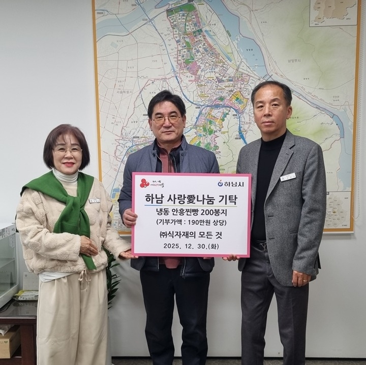 [굿타임즈24/하남] 하홍모 기자 = 하남시는 지난 30일, ㈜식자재의모든것(대표 박경애)이 찐빵 200박스(190만원 상당)를 ‘하남 사랑愛나눔’성품으로 기탁하며, 지역사회 나눔 문화 조성에 기여했다고 밝혔다.