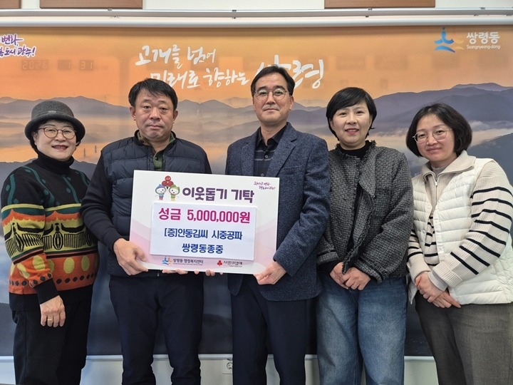 김형옥·장영수 쌍령동 지역사회보장협의체 공동위원장은 “지역사회를 위해 앞장서 주신 안동김씨 시중공파 쌍령동 종중에 감사드린다”며 “기탁해 주신 소중한 마음이 이웃들에게 온전히 전달될 수 있도록 정성을 다하겠다”고 밝혔다.