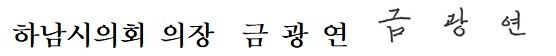 33만 하남시민이 정책의 출발점이자 최종 결정자가 되고, 의정의 기준이 되며, 나아가 결과로 평가하는 ‘일하는 의회’의 표준을 만들기 위해 노력해주신 동료 의원님과 의회사무국 직원 여러분께 깊은 감사의 말씀을 드립니다.
