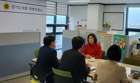 경기도의회 기획재정위원회 부위원장 이혜원 의원 (국민의힘, 양평 2) 은 27일 양평상담소에서 경기도청 기획담당관 관계자와 함께 「경기도 행정기구및 정원조례 개정」 관련 업무보고를 받고, 국가지원 지방도 건설 사업 및 지방채 발행 관련한 주요 현안을 점검했다.