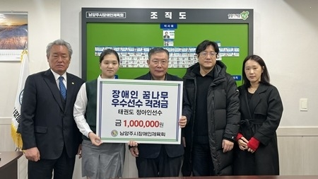 이날 행사에서 손기남 남양주시장애인체육회 수석부회장이 장애인태권도 국가대표 정아인 선수에게 직접 격려금을 전달했다. 전달식에는 윤성한 남양주시장애인태권도협회장을 비롯한 관계자와 선수 가족이 함께 참석해 의미를 더했다.