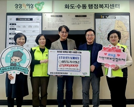 남양주시 ㈜신진스테이지, 화도읍에 이웃돕기 후원금 500만 원 기탁